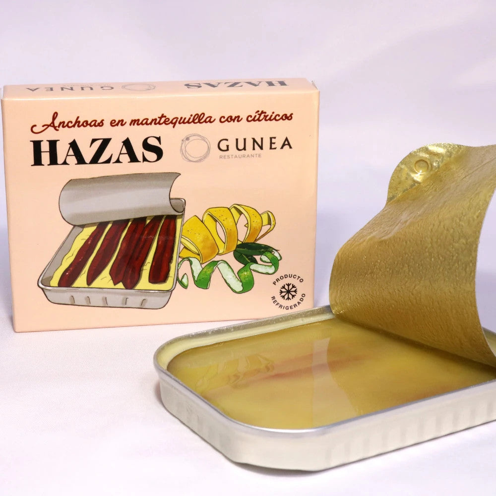 Every tin carries the story of craftsmanship, patience, and attention to detail, created by the skilled women of the village of Lastres who carry forward generations of artisanal knowledge. Their dedication not only produces a product worthy of the most discerning palates but also empowers the local community. Hazas’ anchovies are celebrated with international awards, including 3-star Great Taste recognitions and the Golden Fork for best import product worldwide.