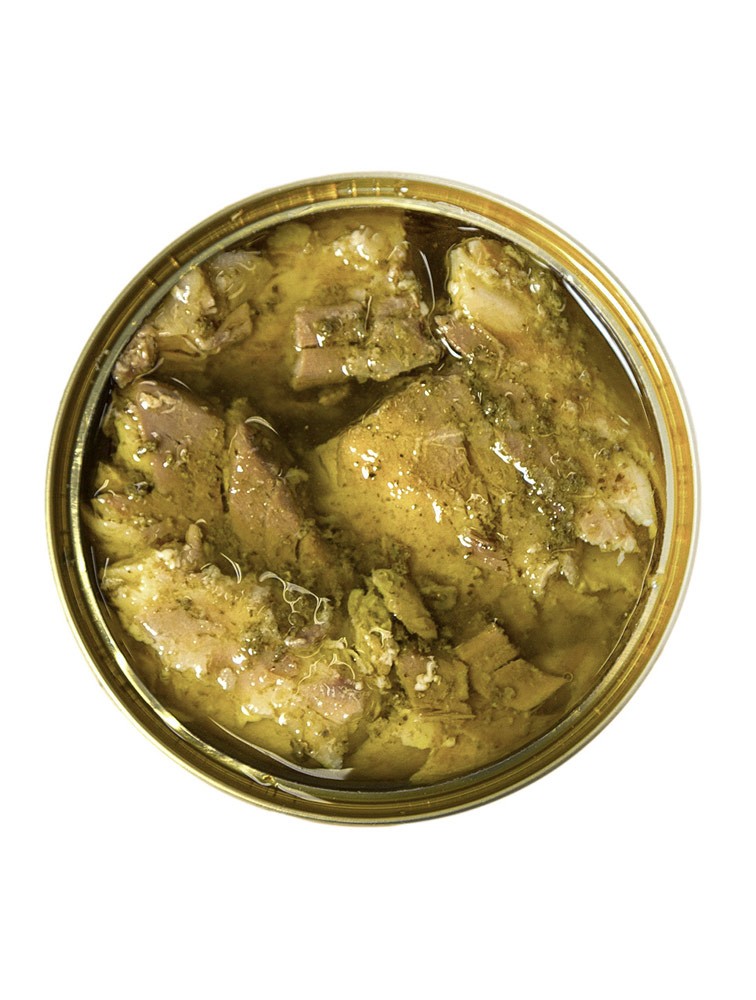 Un giro mediterráneo sobre una captura cántabra: la suavidad de la lubina se encuentra con la frescura del pesto.