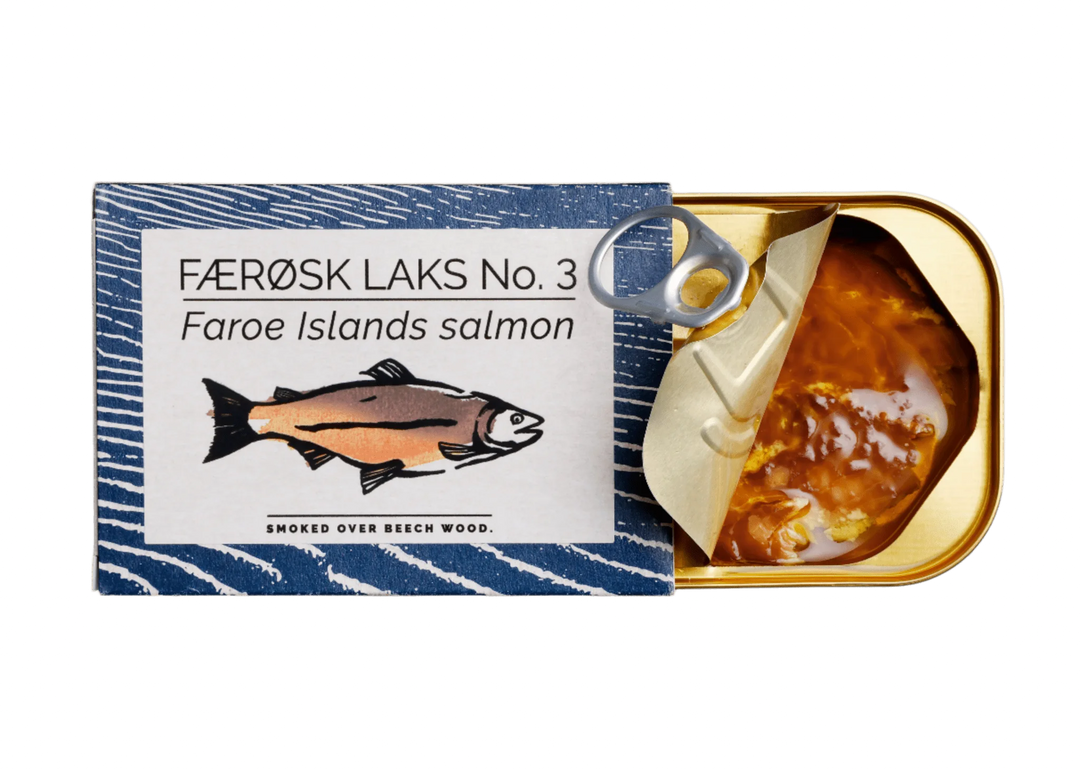 FÆRØSK LAKS No. 3: Saumon des Îles Féroé délicatement fumé au bois de hêtre, sublimant sa texture riche avec une profondeur aromatique subtile.