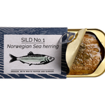 SILD No. 1: Norwegian Sea herring, delicately smoked and seasoned with white pepper and wild ramson, enhancing its bold and aromatic character.